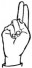 На ћирилици написано ВУКОСАВ ВУКОЈЧИЋ састоји се из 15 слова [?]. Исписано ћириличном једноручном азбуком за глувонеме: